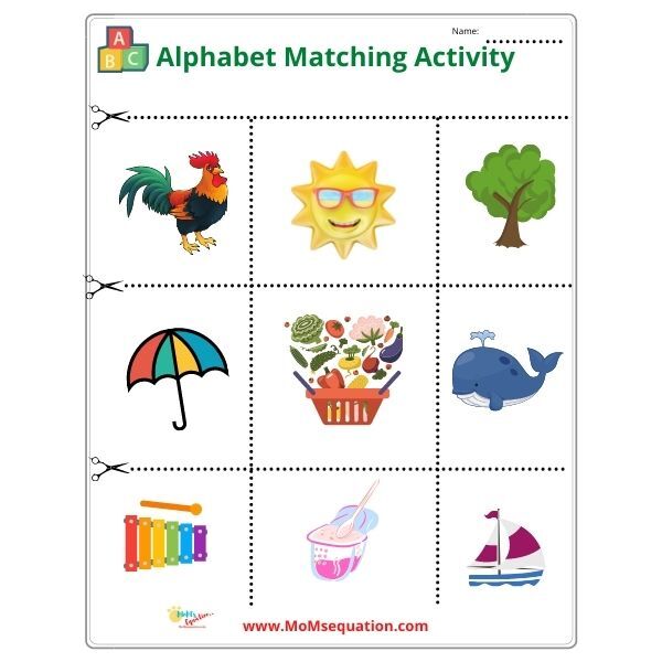 Kids can cut the pictures from the picture pages, and then they have to match(paste) the picture to each appropriate Alphabet.