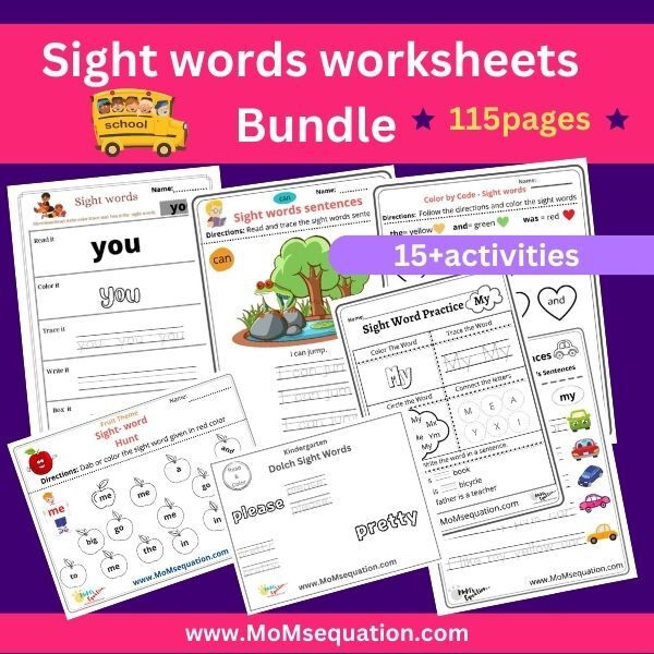110 pages Sight words worksheets bundle for kindergarten & Grade 1 ,Homeschool-15+different sight words activity sheets-Instant download