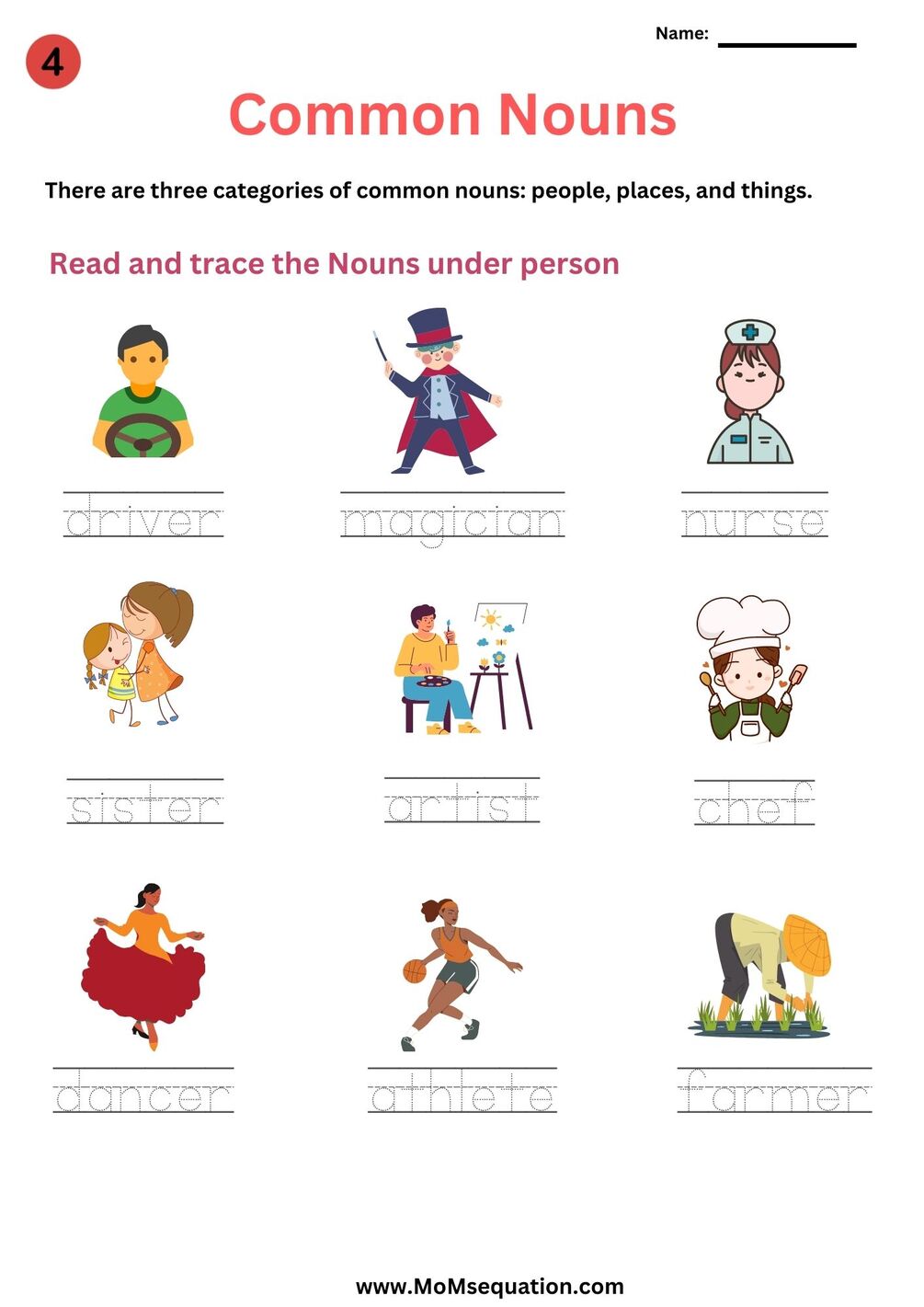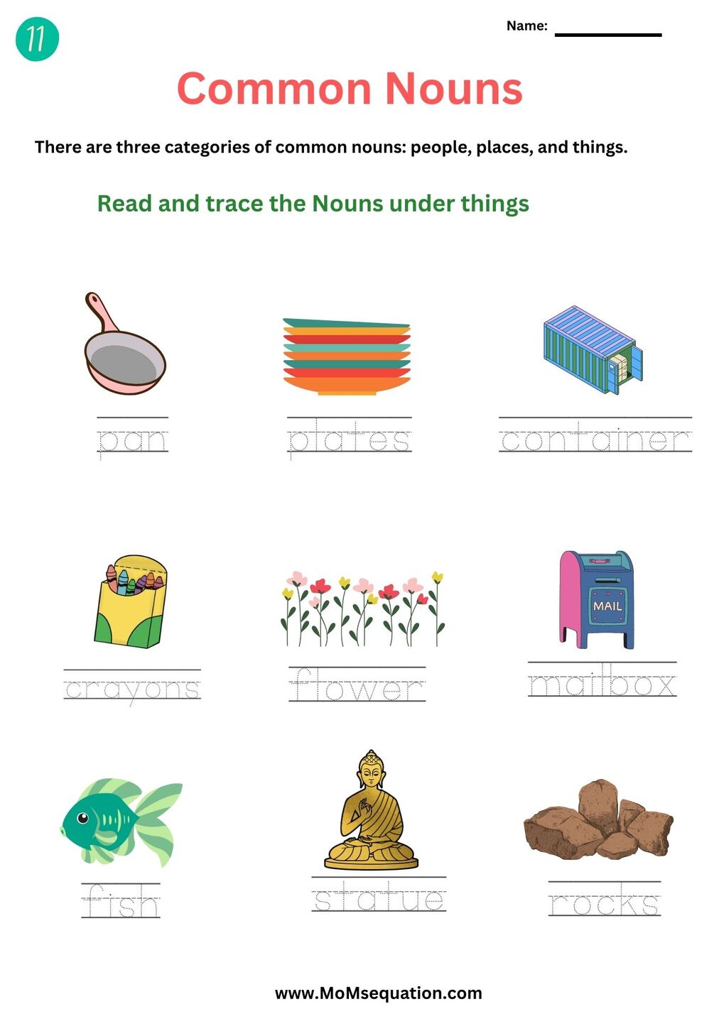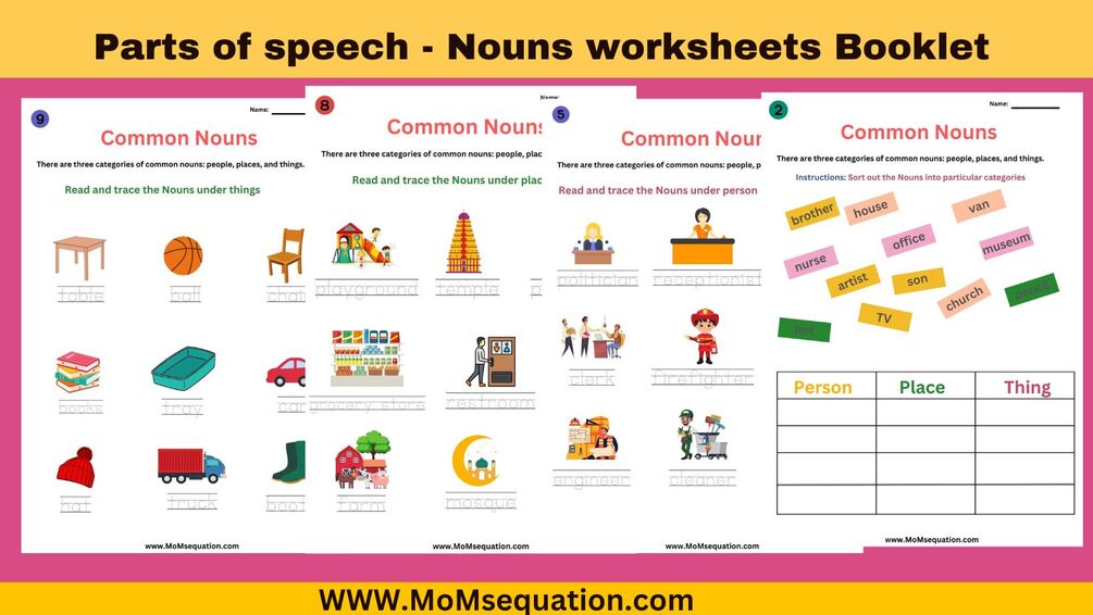 Nouns worksheets for grade 1 and grade 2.Includes a 15-page PDF with a detailed Noun poster. Kids can read and trace different types of Nouns with pictures. Activity sheets are included to test their knowledge at the end.
