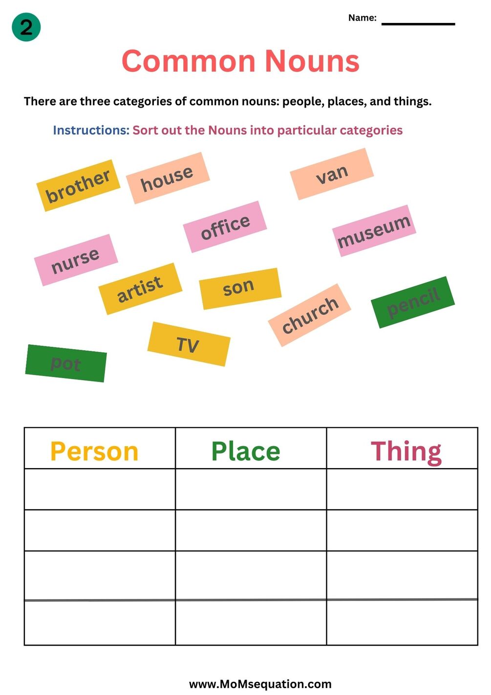 Nouns worksheets for grade1 and grade2-Instant download PDF-Parts of speech worksheets